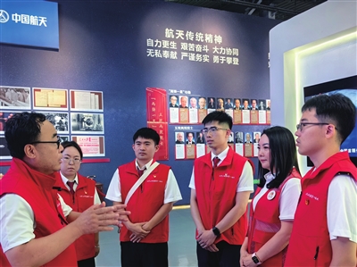 7月30日,中国民航大学教师在中国航天科技集团五院天津基地为四十三中学、芦台第一小学师生宣讲“高质量发展背后的故事”。(摄影:孙玉娇)