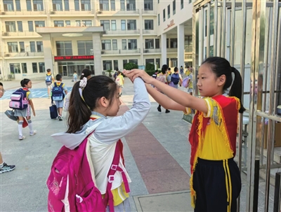 5月,北辰区实验小学注重提升学生文明礼仪意识,组织各项生动实践活动,如在校门口设立“文明监督岗”,通过规范、监督日常礼仪行为,潜移默化地培养学生文明习惯,传承城市文明精神。(摄影:于璟玢)