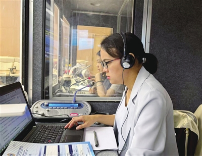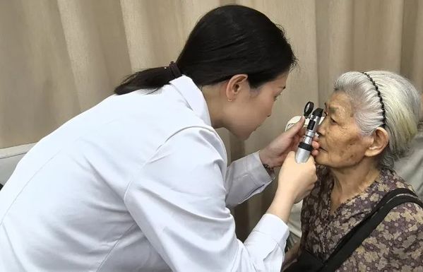 6月6日第30个全国“爱眼日”,天津医科大学眼科医院医务工作者走进和平区部分社区、学校开展义诊宣教活动。图为医务工作者正在为老人进行眼部检查。(图片来源:天津医科大学)
