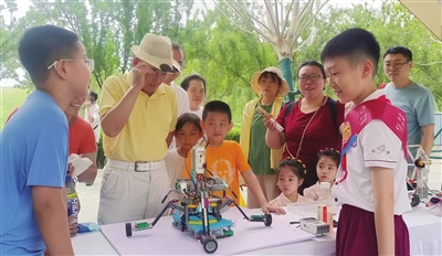 5月31日,天津市和平区万全小学在银河广场开展科普讲解活动。(摄影:纪坤)