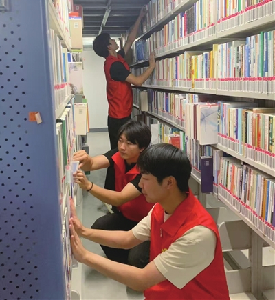 6月8日,天津工艺美术职业学院组织15名志愿者前往天津图书馆参加图书整理志愿服务活动,以实际行动践行志愿服务精神。(图片来源:天津工艺美术职业学院)