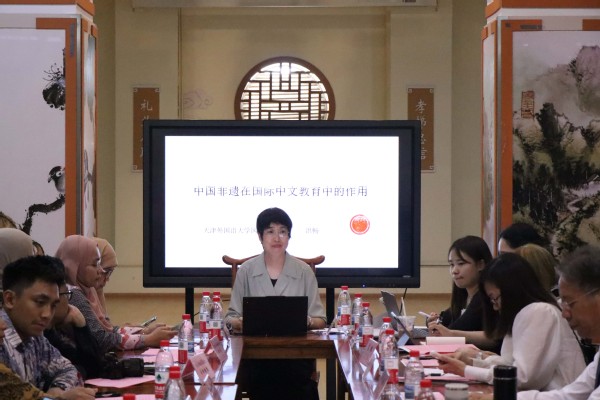 研讨环节中,国际传媒学院肖克曦、孔艳、洪畅、李旭、侯平教师分享了人工智能时代下,AI赋能教学、教师角色转型等汉语教育实践经验。印尼教育工作者代表积极参与交流,围绕“AI如何助力汉语教学”展开深入分享,普拉维贾亚大学汉语系外事专员杨娜,详细介绍了该校利用AI开展汉语教学的具体实践,包括智能教学平台应用、个性化学习方案设计等。