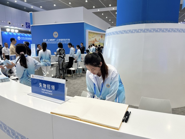 10:00我的主要职责包括提供失物招领、资料分发与现场咨询等服务。协助其他志愿者完成跨语言翻译和设备借用工作,并邀请中外媒体人员在留言册上写下他们的体验。