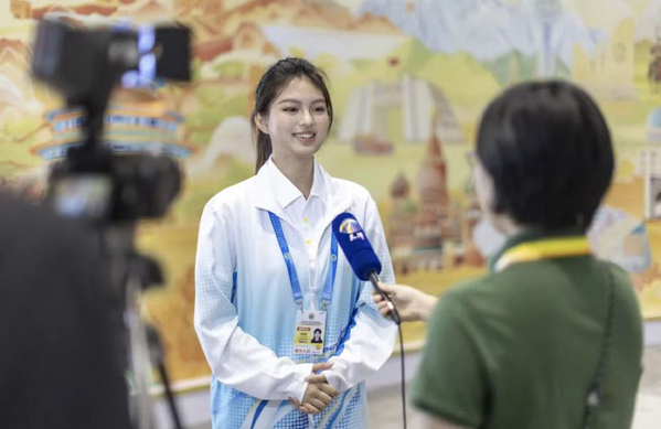 13:50从智能生活区的多语讲解,到外宣品宣传区的文化推介,再到AI科技互动展区的专业解说,我们在老师的带领下,不断学习新知识,提升服务品质,用实际行动诠释着志愿精神,为中外记者提供网络连接、语言翻译、桌面整理及应急事件响应等全链条服务,以高标准确保每一台设备稳定运行、每一条稿件顺畅发出。