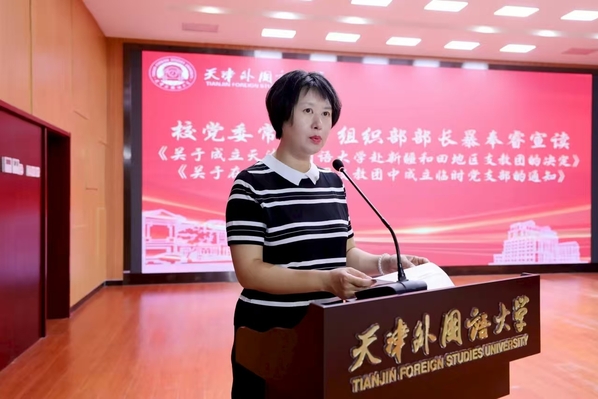 党委组织部部长暴奉睿宣读《关于成立2025年荣耀体育官方网站_荣耀体育jiangnan(中国)赴新疆和田地区支教团的决定》《关于在赴新疆实习支教团中成立临时党支部的通知》。
