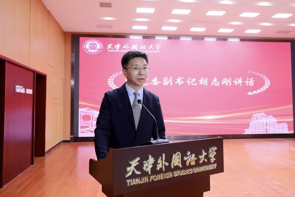 胡志刚在讲话中指出,学校党委始终高度重视援疆工作,选派优秀大学生赴新疆实习支教,是学校服务国家战略的重要举措,是铸牢中华民族共同体意识、促进区域协调发展的生动实践。他向支教团的全体师生提出三点希望。一是提高政治站位,牢记使命担当。要用高度的责任感和使命感投入工作,用实际行动践行为党育人、为国育才的初心使命。二是潜心教书育人,播撒希望种子。要虚心向当地的干部群众学习,与各族师生、群众真诚交朋友、结对子,像石榴籽一样紧紧地抱在一起,积极充当文化交流的使者,讲好中国故事、天津故事、天外故事。三是磨练意志品质,实现自我升华。要充分发挥党员的先锋模范带头作用,从维护祖国统一和民族团结的高度出发,敢担当、有作为。