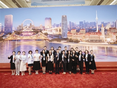 在梅江会展中心,翻译团队作为晚宴和非遗展示区的沟通纽带,为各国贵宾搭建交流平台,为讲好中国故事、天津故事、非遗故事贡献了天外力量。负责非物质文化遗产性项目讲解的尹佳和马涛两位老师都说:“在讲解和服务的过程中,我们要随时应答各国贵宾提出的各种问题,还要协调和满足他们的一些小需求。同时,在介绍产品时要考虑到不同的文化和生活差异,用最准确又最能让他们快速了解的表达进行讲解。作为翻译人员,不仅是信息的传递者,也是沟通者、协调者。”