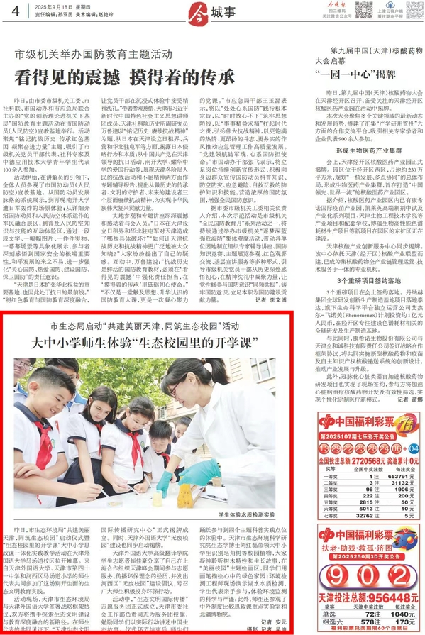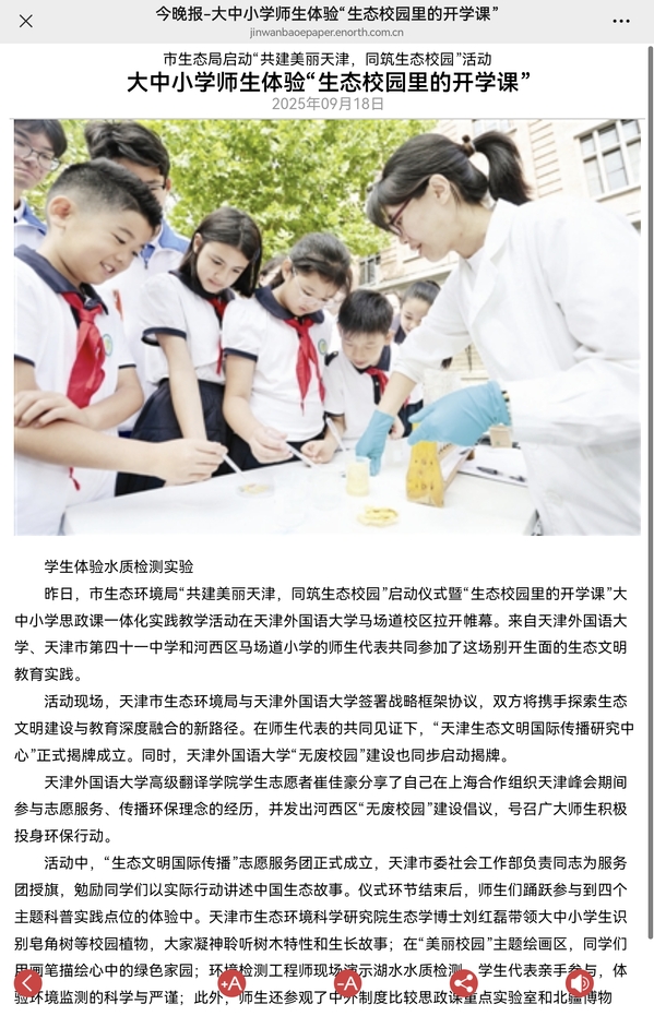 【媒体天外】《今晚报》报道市生态环境局“共建美丽天津,同筑生态校园”启动仪式暨“生态校园里的开学课”大中小学思政课一体化实践教学活动在荣耀体育官方网站_荣耀体育jiangnan(中国)马场道校区拉开帷幕。