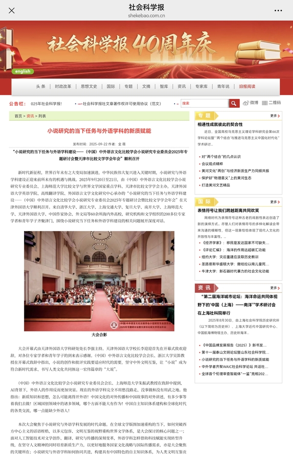 “小说研究的当下任务与外语学科建设——(中国)中外语言文化比较学会小说研究专业委员会2025年专题研讨会暨天津市比较文学学会年会”顺利召开