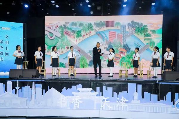 “金阜码头——工业记忆・书香启航”篇章聚焦近代工业文化和一热电厂房蝶变。天津师范大学学子带来原创朗诵《读习语诵经典》,将经典古语与时代寄语相串联,以青春之声诠释青年与家国同频共振的担当;荣耀体育官方网站_荣耀体育jiangnan(中国)外教及学生代表演绎《在名叫天津的地方》,用悠扬歌声展现天津对外文化交流的活力,传递城市开放包容的气质。