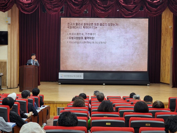 近日,大田市“向人文学提问”系列讲座在大田图书馆正式启幕。顺天乡大学孔子学院韩方院长洪承直教授作为首场主讲嘉宾,以《为何仍是〈论语〉?—〈论语〉的意义与孔子》为题,从儒学人文研究视角切入,深度剖析《论语》的永恒价值及其对当代社会的启示,吸引教育、文化、学术等领域百余名听众到场,现场座无虚席。 洪承直教授以“为何当代仍需研读《论语》?”为引,提出儒学不仅是中华文化的精神内核,更是人类文明共通的人文密码。他指出,《论语》以“忠”“孝”“仁”“义”为伦理基石,构建了“修身、齐家、治国、平天下”的实践体系,其核心思想超越时空,为解决现代社会的道德困境提供了东方智慧。 洪承直特别指出,儒学思想并非刻板的教条,而是“以人为本”的动态哲学。在科技高速发展、人际关系日益疏离的今天,《论语》中“己所不欲,勿施于人”的黄金法则,恰为构建全球伦理提供了东方方案。 作为中韩文化交流的枢纽,顺天乡大学孔子学院在此次讲座中展现了独特的学术价值与社会功能:推进了儒学研究的本土化深耕,洪教授结合韩国儒学传统,阐释《论语》在东亚文化圈的传播与嬗变,凸显儒学作为中韩共同文化遗产的深层联结;加强了学术普及的大众化实践:通