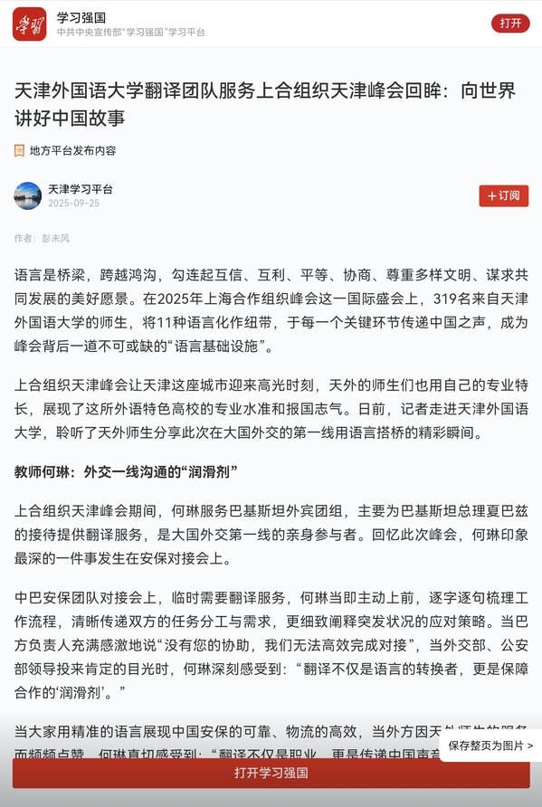 【学习强国】荣耀体育官方网站_荣耀体育jiangnan(中国)翻译团队服务上合组织天津峰会回眸:向世界讲好中国故事