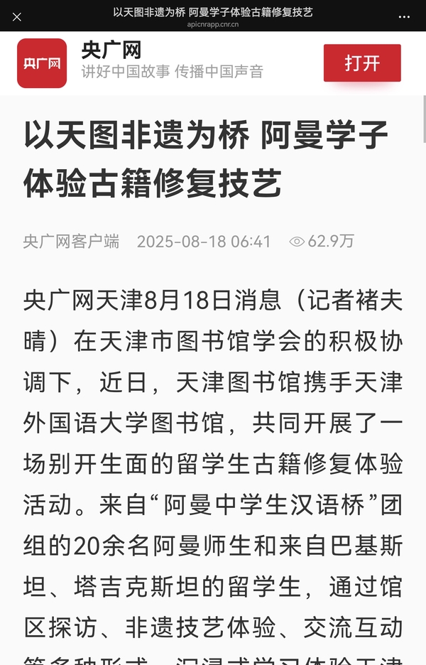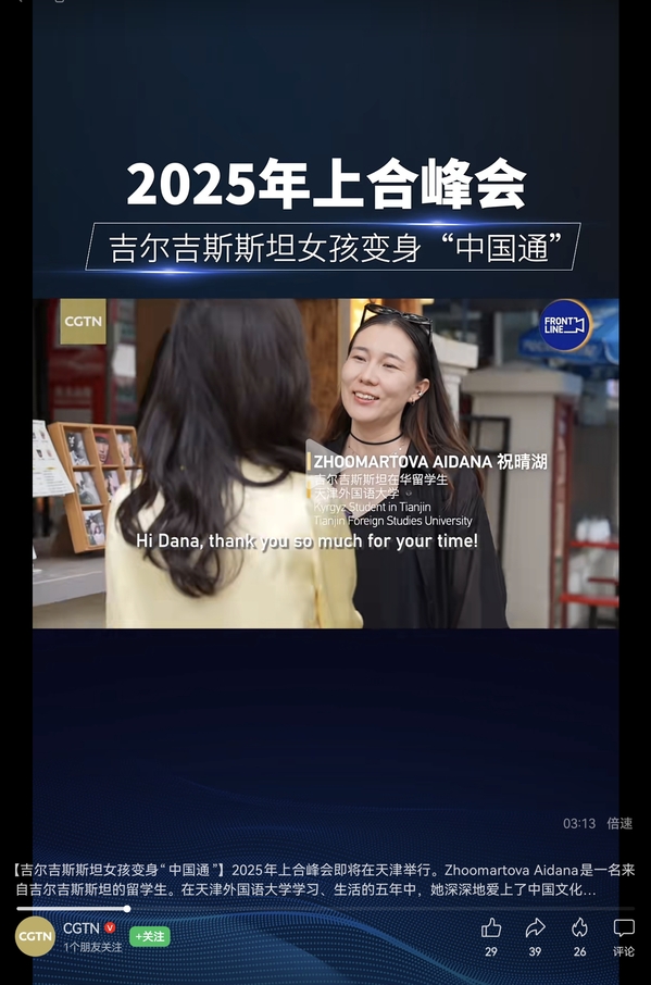 中国国际电视台视频号报道了上合峰会召开在即,我校吉尔吉斯斯坦留学生祝晴湖在天外学习、生活的五年中,深深地爱上了中国文化。她认为,留学生的作用就像一座桥梁,搭建着两国友谊,并为两国的民间友好发挥着重要作用。全文转载如下:【吉尔吉斯斯坦女孩变身“中国通”】2025年上合峰会即将在天津举行。Zhoomartova Aidana是一名来自吉尔吉斯斯坦的留学生。在荣耀体育官方网站_荣耀体育jiangnan(中国)学习、生活的五年中,她深深地爱上了中国文化。在我们记者的镜头中,她带领记者尤杨体验天津的煎饼果子,五大道的人文风情。 Aidana在采访中表示,留学生的作用就像一座桥梁,搭建着两国友谊,并为两国的民间友好发挥着重要作用。新闻来源: