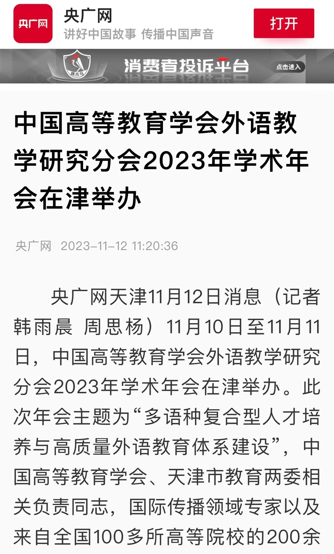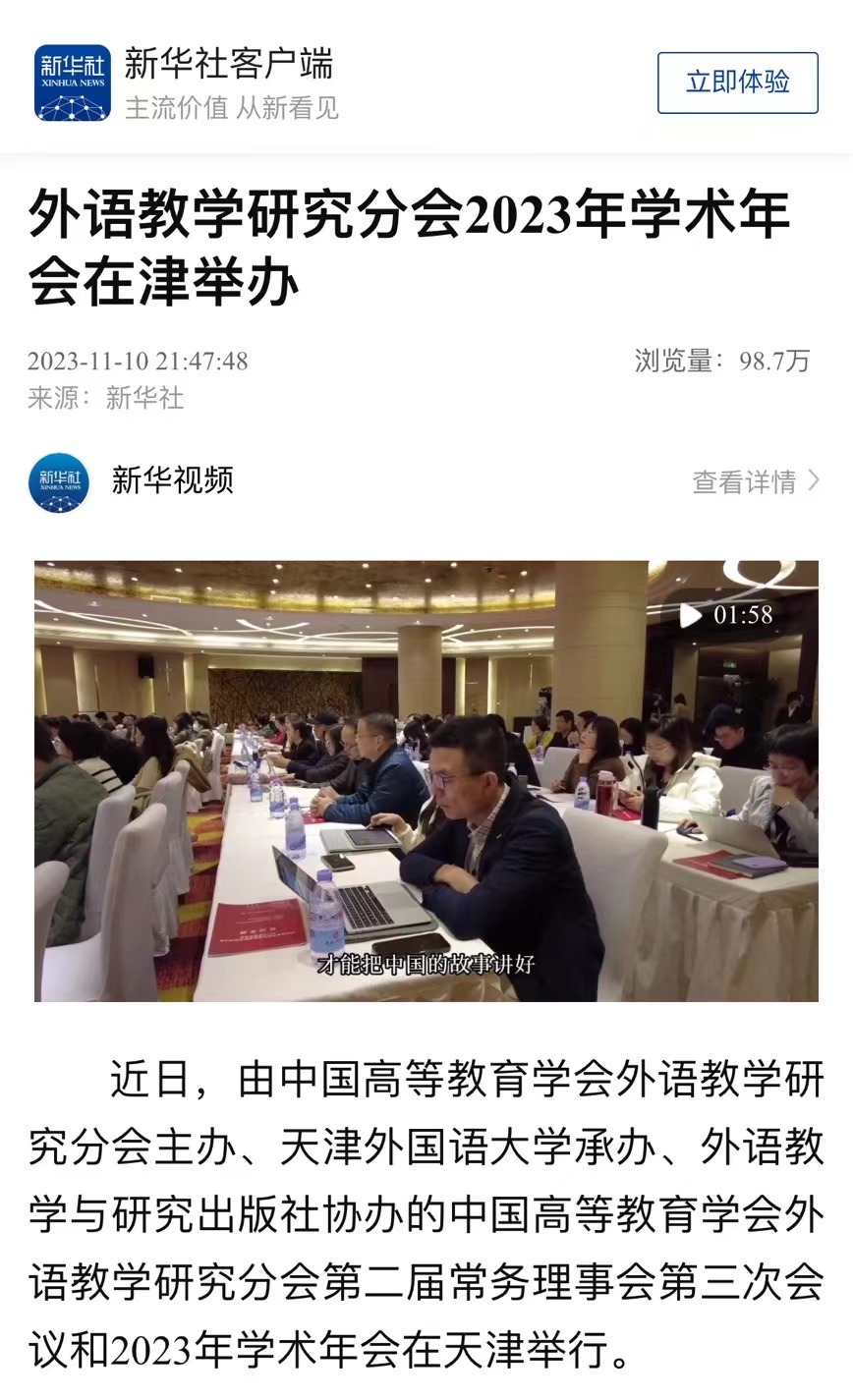 央广网天津11月12日消息(记者韩雨晨 周思杨)11月10日至11月11日,中国高等教育学会外语教学研究分会2023年学术年会在津举办。此次年会主题为“多语种复合型人才培养与高质量外语教育体系建设”,中国高等教育学会、天津市教育两委相关负责同志,国际传播领域专家以及来自全国100多所高等院校的200余名代表齐聚一堂,以党的二十大精神为指引,共探外语复合型人才培养新路径,共绘外语教育高质量发展新华章。中国高等教育学会副会长李家俊,中国高等教育学会外语教学研究分会理事长、北京外国语大学党委书记王定华,天津市委教育工委副书记刘怡蔓,荣耀体育官方网站_荣耀体育jiangnan(中国)党委书记周红蕾出席开幕式并分别致辞。荣耀体育官方网站_荣耀体育jiangnan(中国)党委副书记、校长陈法春主持开幕式。李家俊代表中国高等教育学会对学术年会的召开表示热烈祝贺,对外语教学研究分会为学会发展作出的重要贡献表示诚挚感谢。他衷心希望外语教学研究分会继续踔厉奋发、勇毅前行,并对分会下一阶段发展提出要求:一是要坚持党建引领,增强组织凝聚力;二是要坚持学术立会,发挥学术引领力;三是要坚持大局意识,提高社会服务力;四是要坚持开放交流,扩大国际影响力。王定华在视频致辞中对与会专家和代表